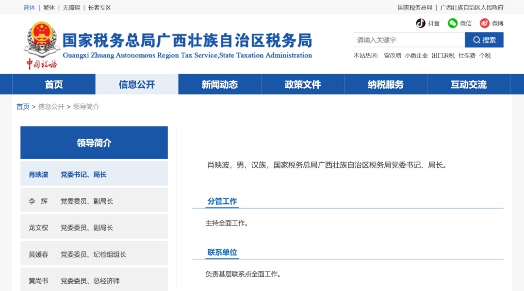 近日配资操盘十大技巧,国家税务总局广西壮族自治区税务局官网领导简介一栏更新信息显示,肖映波已任国家税务总局广西壮族自治区税务局党委书记、局长。